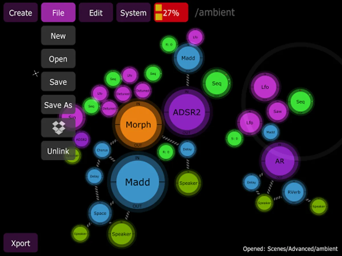 Jasuto comes installed with 75+ modules as well as 200+ pre-loaded scenes and samples. Each of the modules have been hand-optimized for your device's CPU, allowing you to create extremely complex scenes.
