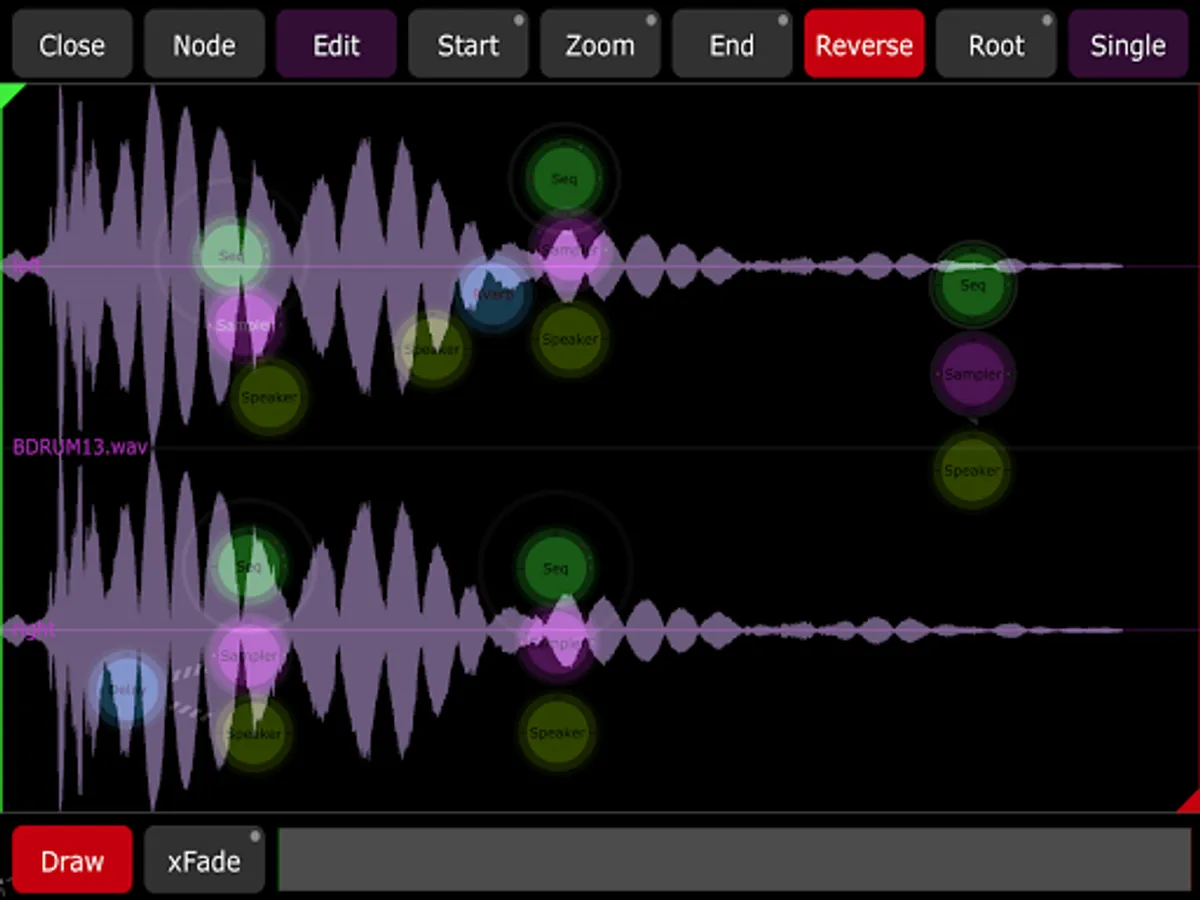 Jasuto allows you to visually construct your own synths/effects, and use them to make sequences all on your device! With the addition of a fully-featured sampler you can now record/resample/edit, and even create entirely new samples by drawing right in the app.