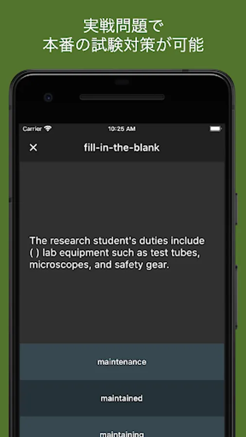 It is possible to solve the problem in a game format. Problems are displayed at random, and if you make a mistake, it ends immediately. It is impossible to get a high score unless you understand the grammar properly.