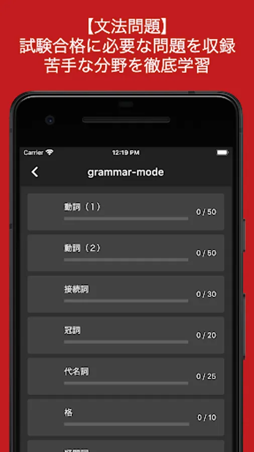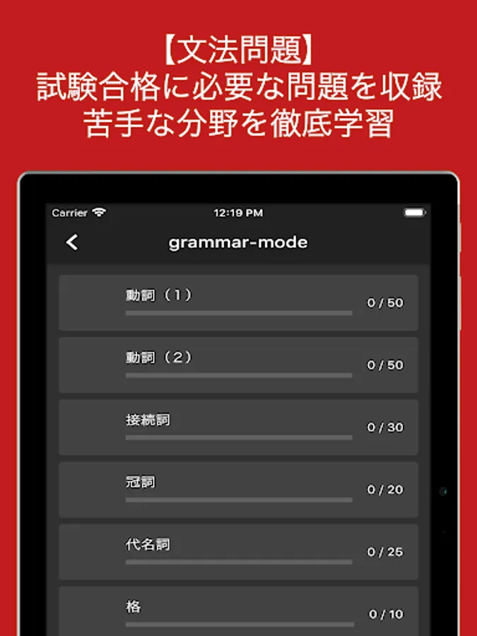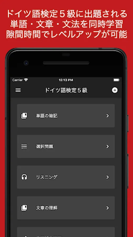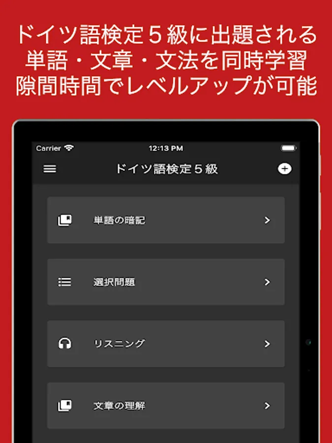 本アプリは以下の手順で学習をすることでドイツ語検定5級合格に必要な語彙力、読解力、文法力、リスニング力を総合的に獲得することが可能です。