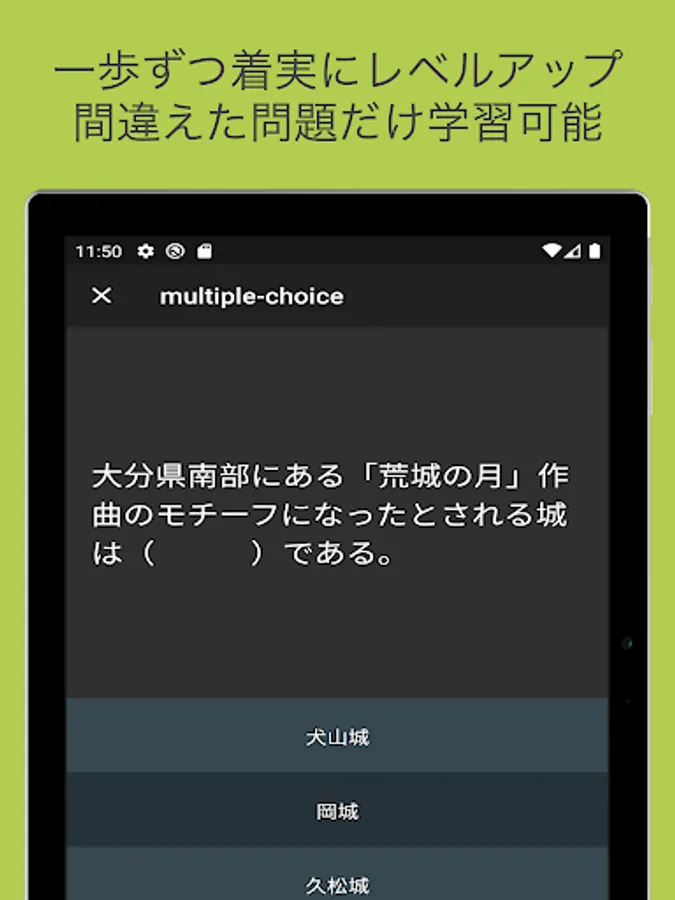 By category: You can solve problems in each category, such as "onsen", "temple shrines and temples", "specialty products", so you can preferentially learn areas you are not good at.