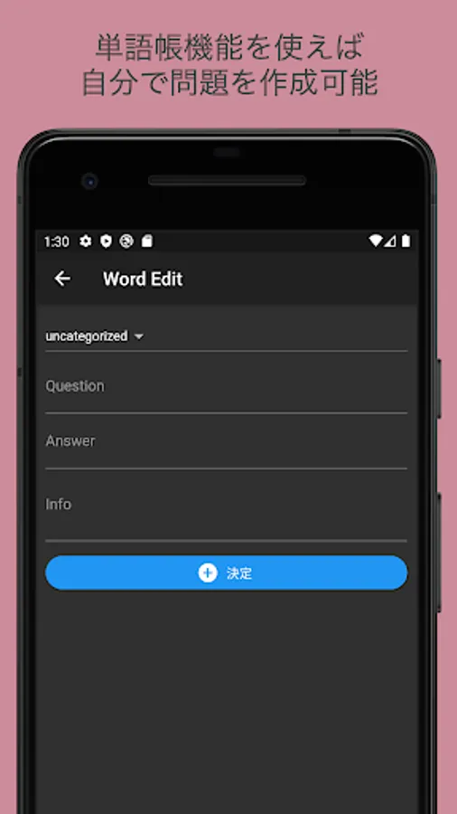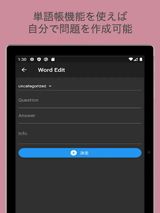 自分で単語を登録し、任意の選択問題を作成することができます。