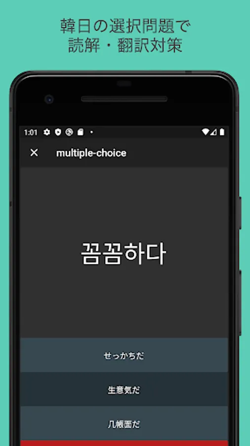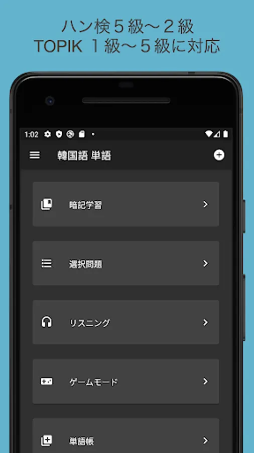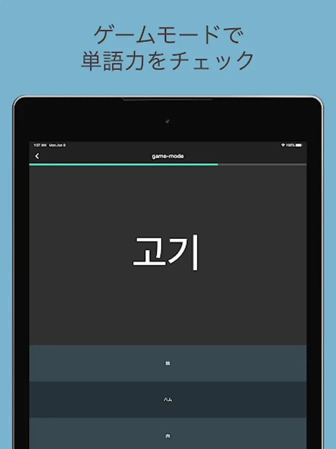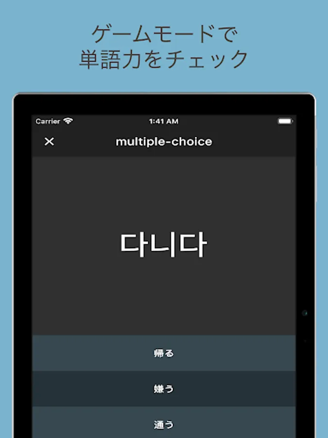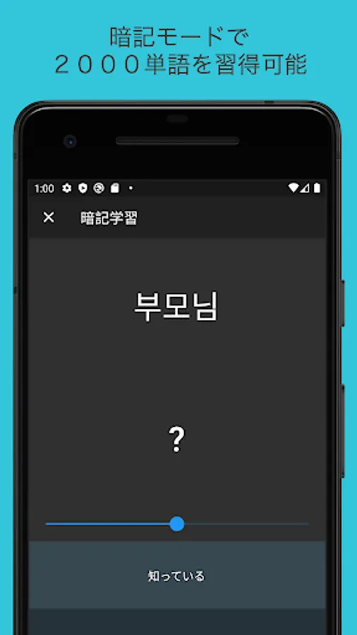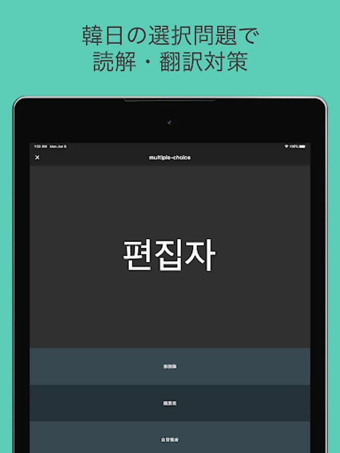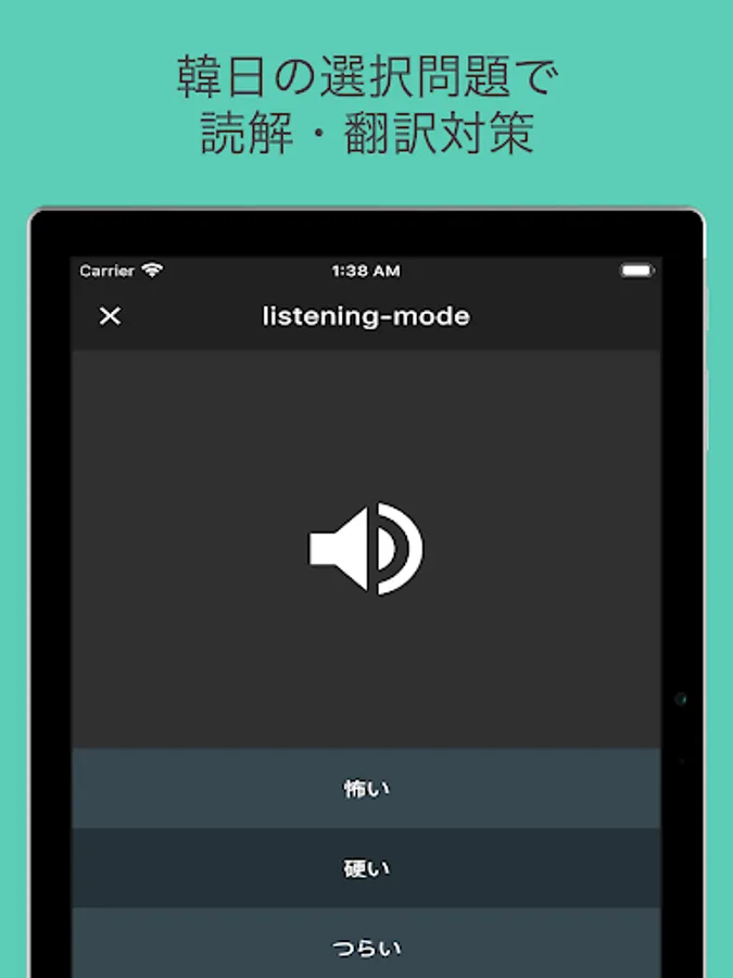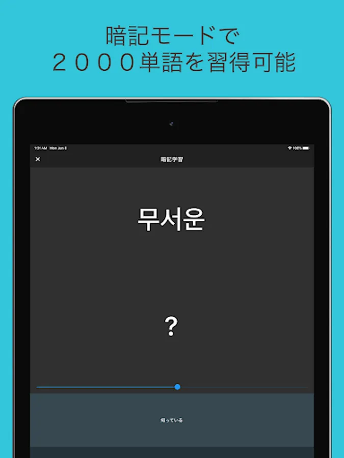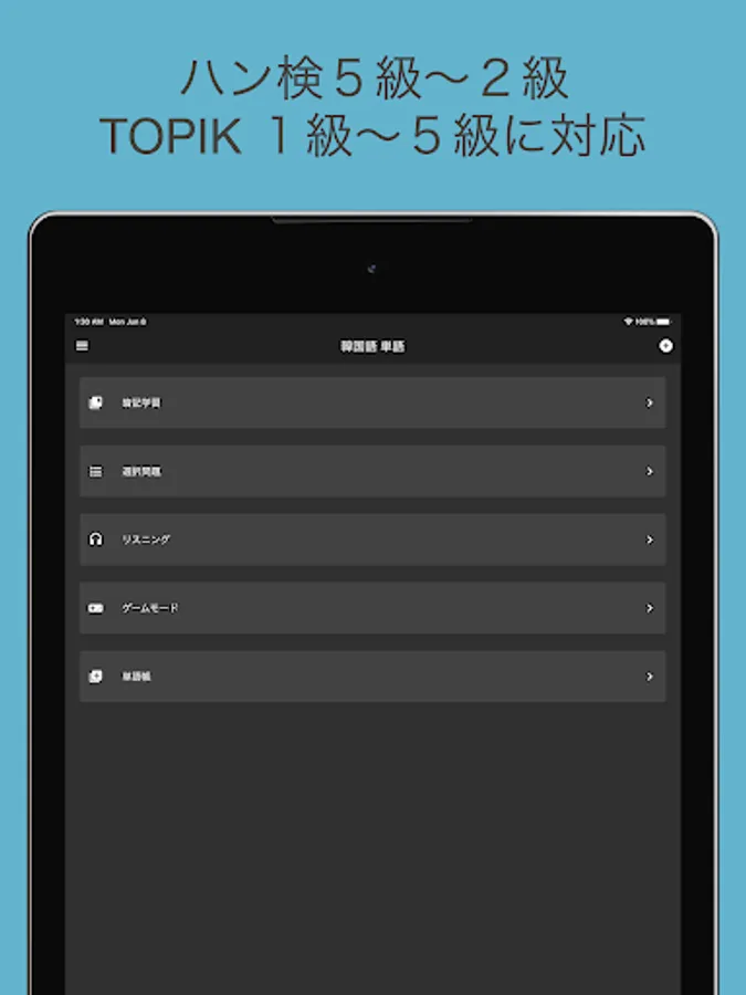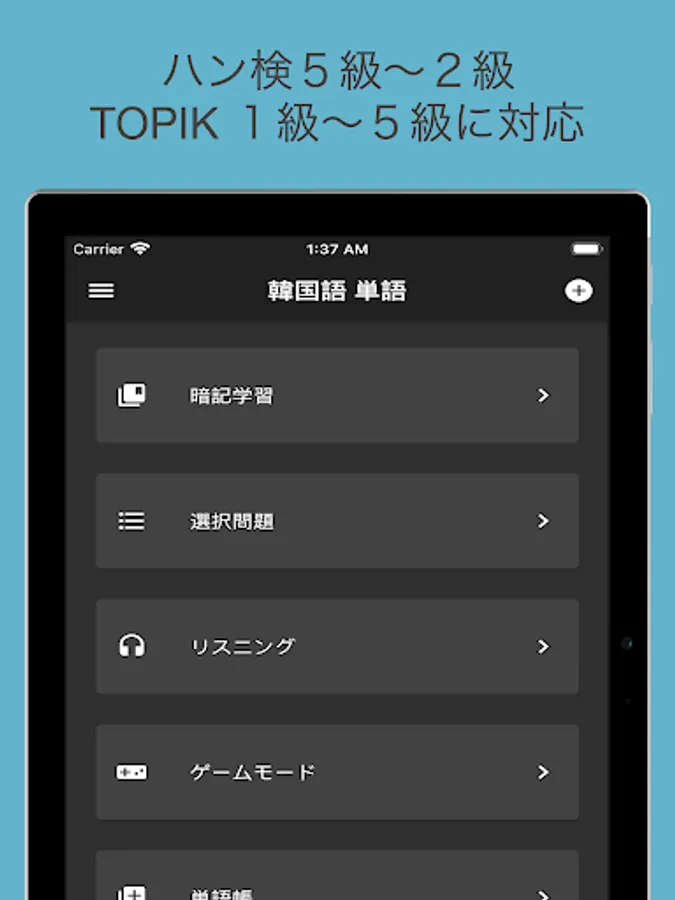 このアプリは韓国語の「単語力」と「リスニング力」を鍛えるためのものです。暗記学習・選択問題・リスニング問題を通じて4300単語を学ぶことが可能です。