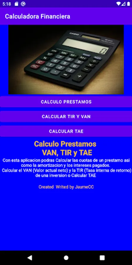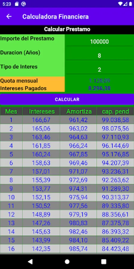 Application that allows in a few steps the calculation of the installments of a loan as well as obtaining the list of the entire duration of the loan breaking down Amortization, Interest and outstanding capital.