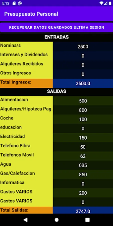 With this application you will be able to know and control the available monthly income and have control over both fixed and eventual monthly expenses.