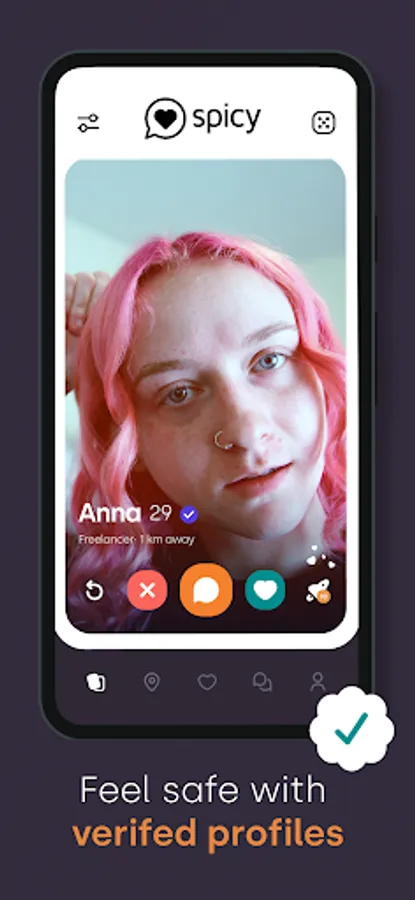 We present you with the most interesting lesbian women around you. Swipe, match and choose who you like and who you don’t. You only get messages from singles you like, and you decide who can start a conversation with you. In SPICY, you have full control and you won’t be bothered by unwanted visitors.