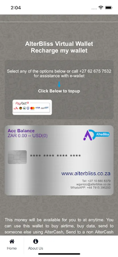 This APP enables you to transact conveniently through the use of our easy to use AlterBliss Wallet. Recharge your wallet your credit card, transfer from another user or bank deposit and use it for daily purchases such as Airtime, bills and Online Store