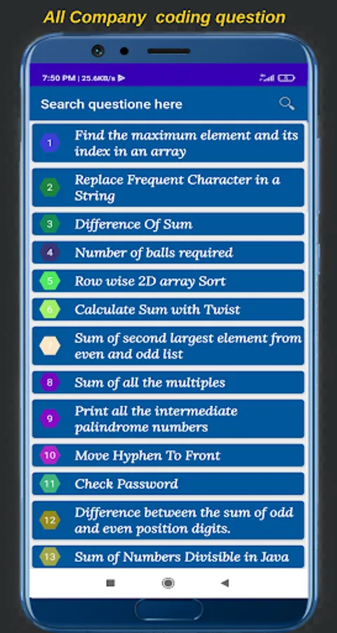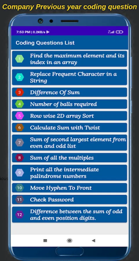 Here you will get a list of Companies like TCS Wipro Infosys etc when you click on the any company then you will get a list of all the questions which is recently asked by that company and by clicking on the question you will get complete easy programming solution code.