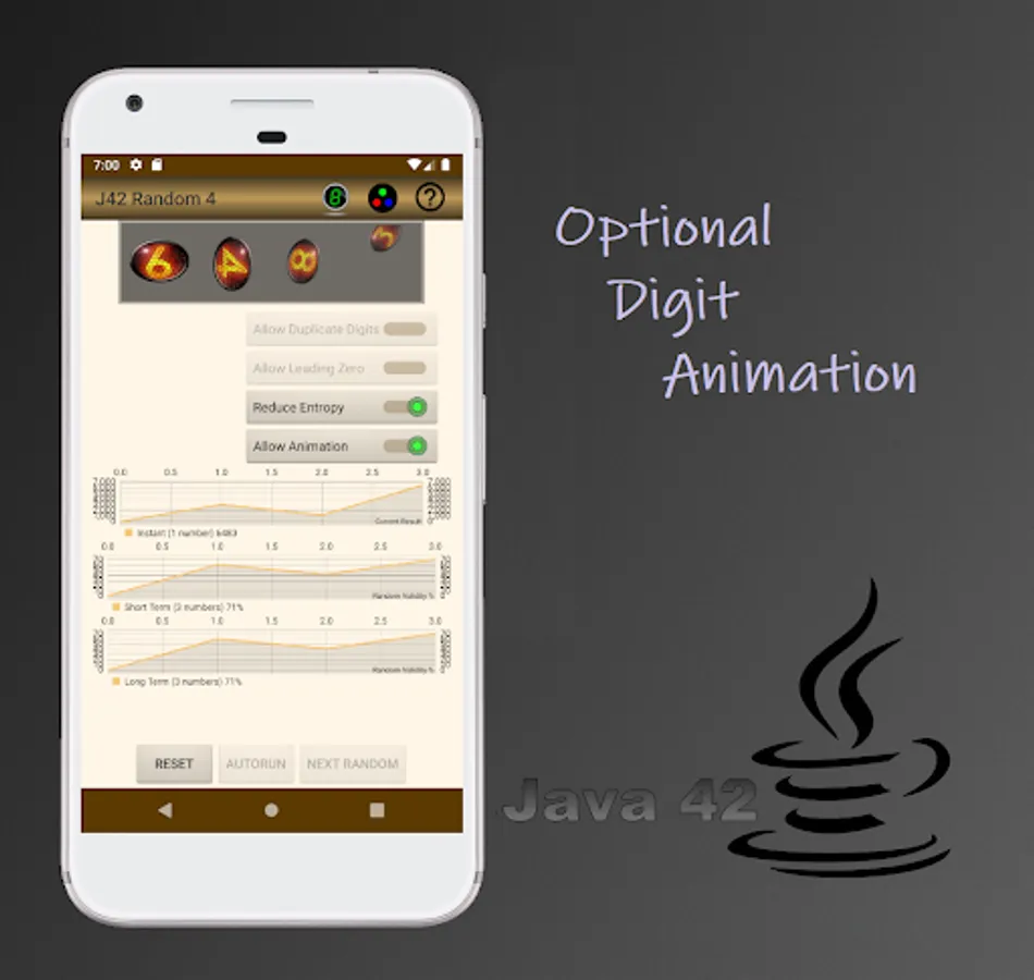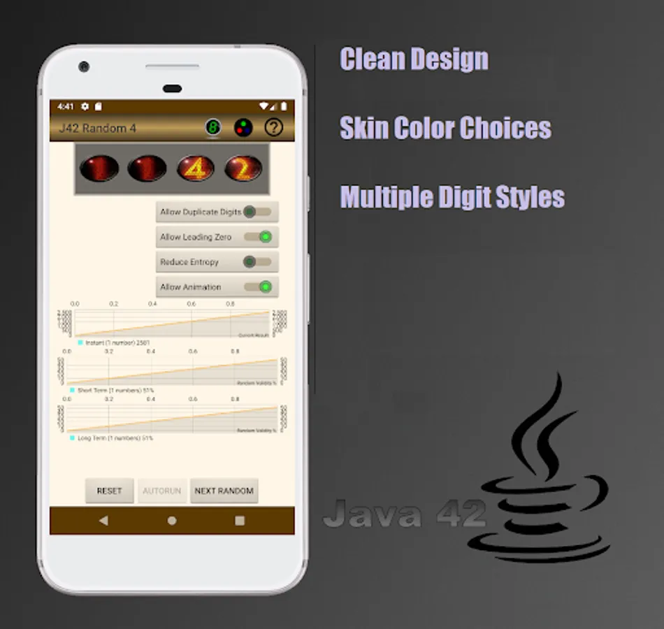 This application will generate a sequence of 2, 3 or 4 digit numbers that cannot be reasonably predicted. Tap a digit to turn it off or on. Any noticeable predictability is nothing more than a random chance or coincidence. No individual digit can be predicted from knowledge of any other digit or group of digits.