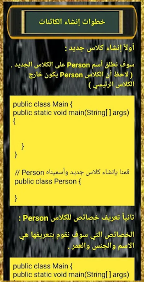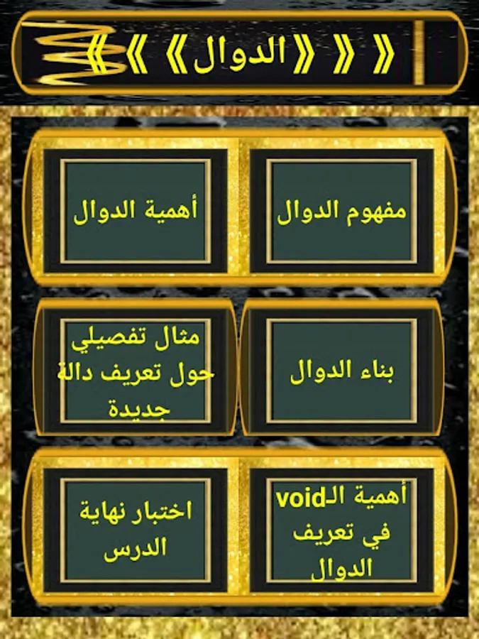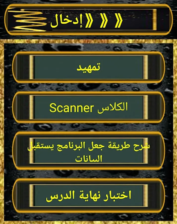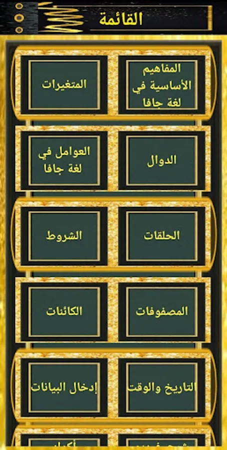 تطبيق تسطيع من خلاله تعلم أساسيات الجاڤا بالعربي ، عن طريق فصول تعليمية واختبار لكل فصل عند الانتهاء من تعلّمه