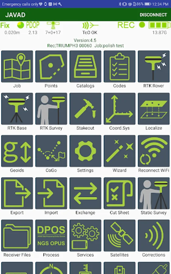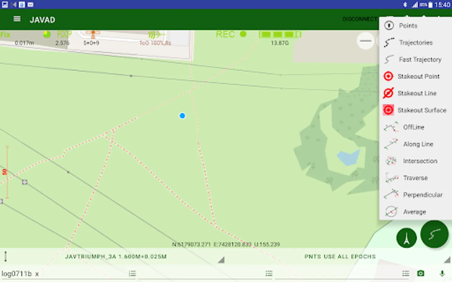 Javad Mobile Tools is an Android™ GNSS data collection app for use with compatible JAVAD GNSS receivers. JMT connects to the GNSS product via Bluetooth® or Wi-Fi and allows configuration of GNSS, radio, cellular modem, and data recording for RTK or static surveys.