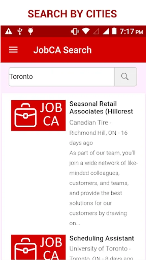 Looking for Job in Canada. JobCA is a simple job location finder app in Canada.
