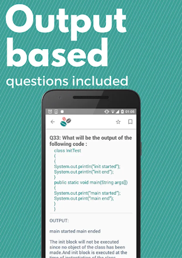 -Output based questions are also incorporated in the question set for users to apply their theoretical knowledge to practice.