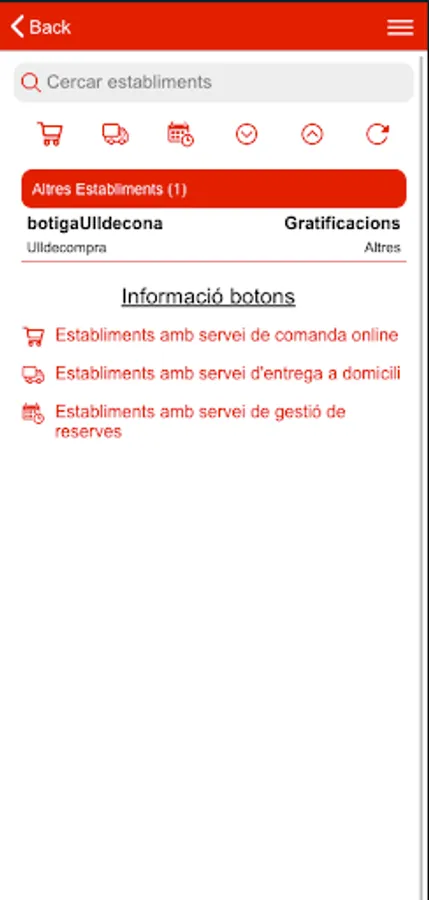 The Application can be used without the need to be registered. In this case, users will have access to the list of establishments in the municipality of Ulldecona participating in the campaign, of which relevant information is provided so that users can easily find what they are looking for, and can make purchases there in person.
