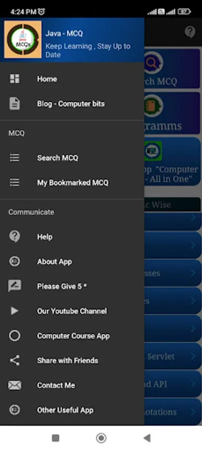 Our app is designed to provide you with all the tools and resources you need to become an expert in Java programming, whether you're a beginner or an experienced developer. With a wide range of features and functionality, including multiple choice quizzes, a comprehensive library of Java programs, and interview questions and answers, our app is the ultimate tool for anyone looking to improve their Java skills.