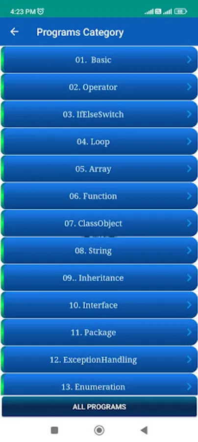 Comprehensive library of Java programs: Our app includes a vast library of Java programs, covering everything from simple "Hello World" programs to complex algorithms and data structures. Whether you're looking for a quick reference or a detailed example of how to implement a particular feature or function, our library has you covered.