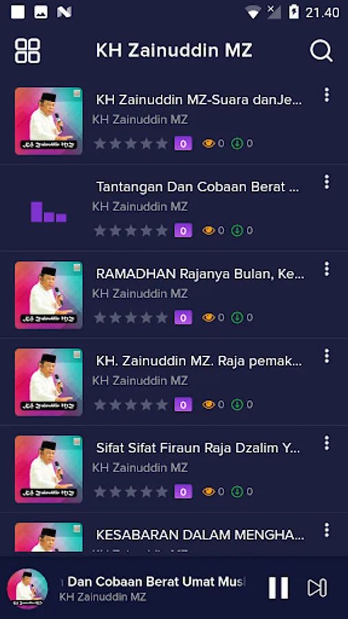 All lecture and question and answer files contained in the application are not stored in the application but are sourced from the internet, if there is a violation that does not want to be displayed in this application can contact our developer contact. This application aims for lovers of Funny Lectures KH Zainuddin MZ MP3 who likes to listen and download questions and answers, lectures, murottal al-Qur'an, blessings, nasyid and others.