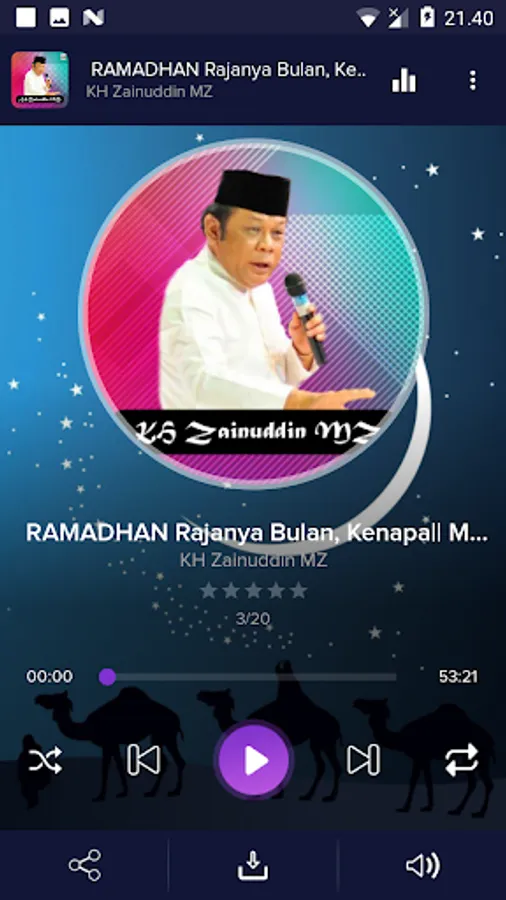 Funny Lectures KH Zainuddin MZ MP3 is an application that contains questions and answers and lectures, murottal Al-Quran, blessings, nasyid the best choice of editors. Through Funny Lectures KH Zainuddin MZ MP3, you can listen to questions and answers and lectures, murottal Al-Quran, blessings, nasyid as long as you want easily, just touch the items on the list. This application is inspired by Indonesian users who like to listen to questions and answers and lectures, murottal Al-Quran, blessings, nasyid through television and live.