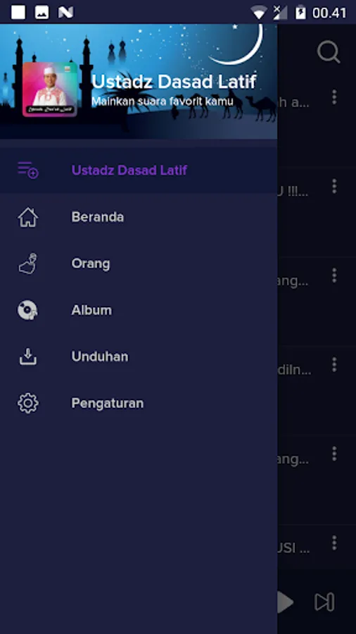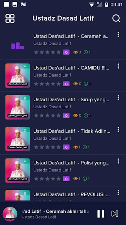 Lectures by Ustadz Dasad Latif MP3 is an application that contains questions and answers and lectures, murottal Al-Quran, prayers, nasyid of the editor's choice. Through Lectures by Ustadz Dasad Latif MP3, you can listen to questions and answers and lectures, murottal Al-Quran, prayers, nasyid as long as you want easily, just touch the item on the list. This application is inspired by Indonesian users who like to listen to questions and answers and lectures, murottal Al-Quran, prayers, nasyid through television or live.