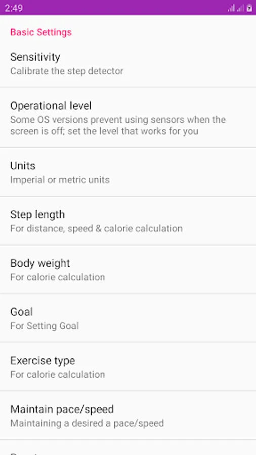 Adjust setting before start using the app. With out adjusting all settings, the calculation will be wrong. Don’t turn off you display manually by press the power button. It will cause the pedometer service to stop working.