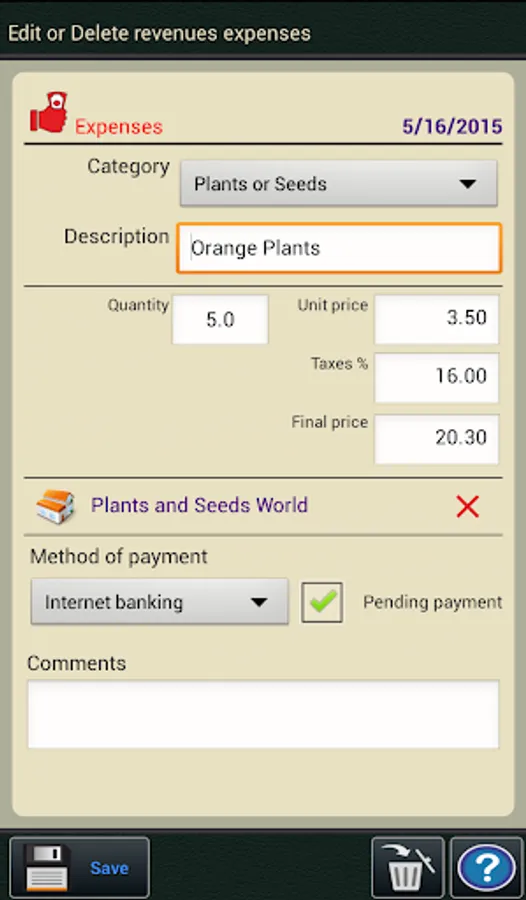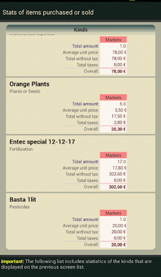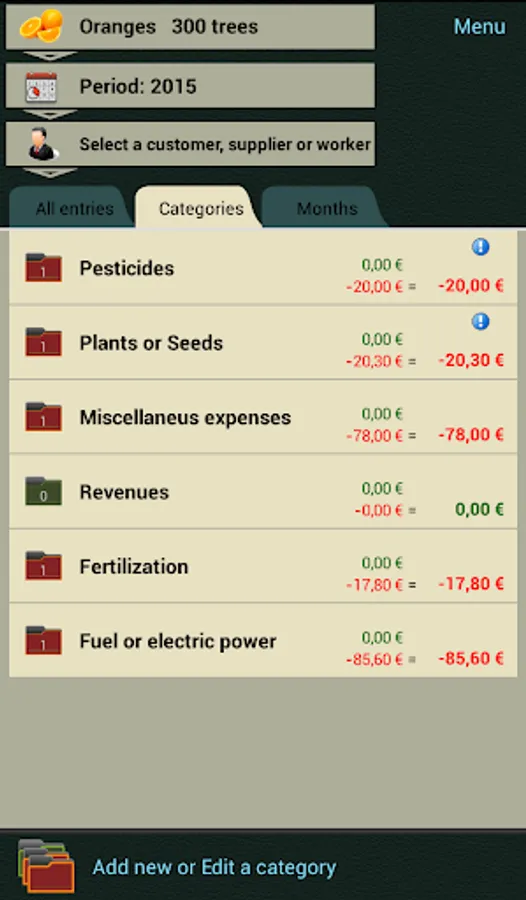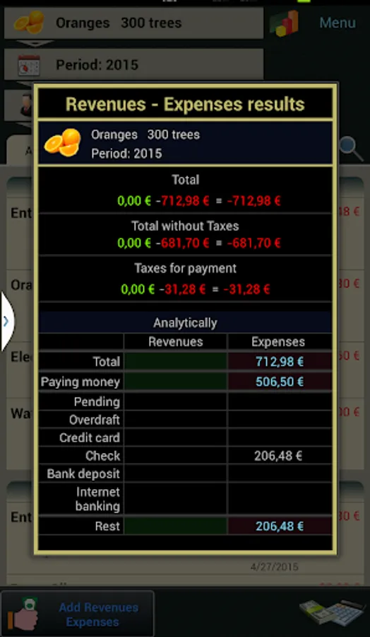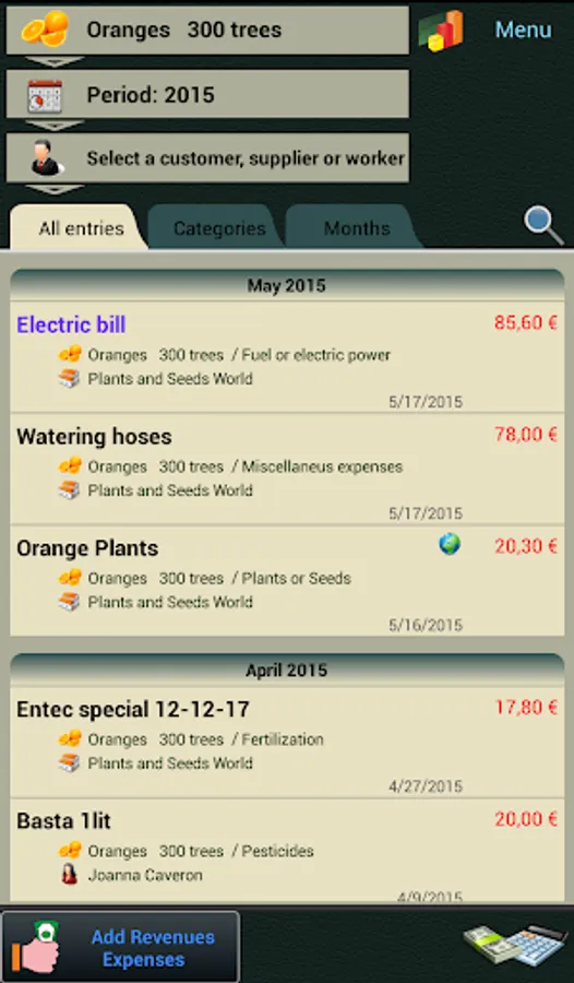 Simultaneously agrofarm calculates the revenues and expenses of every rural activity.