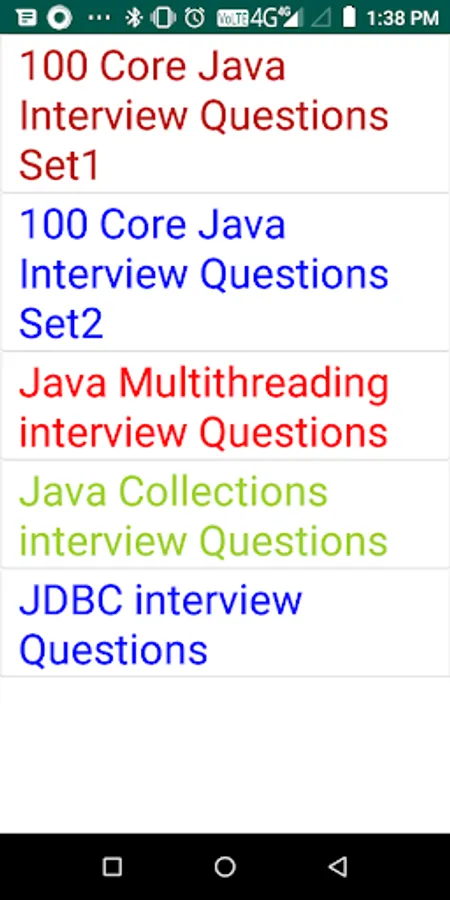 This app covered all the topics with detailed discussions related to these technologies. Topics are explained with the help of diagram and source code. At the end of tutorials their is a separate section of interviews questions corresponding to each technologies.