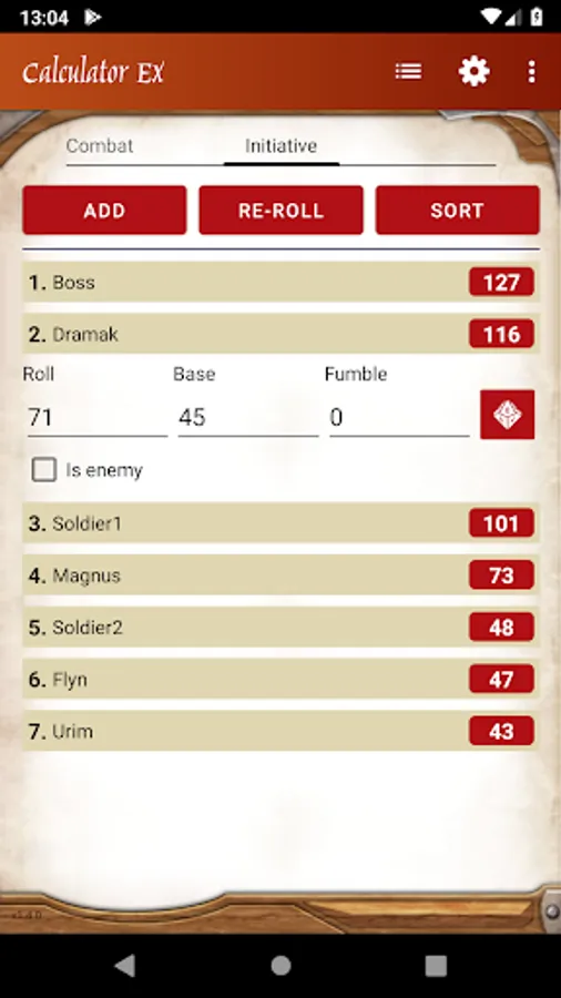Calculate the initiative rolls for the entire party (and enemies) with a single button click!