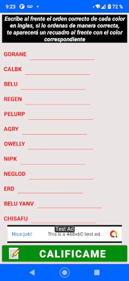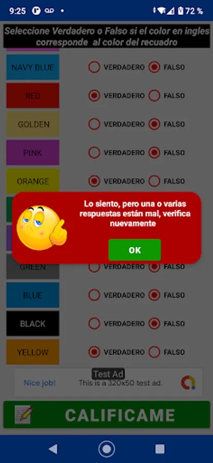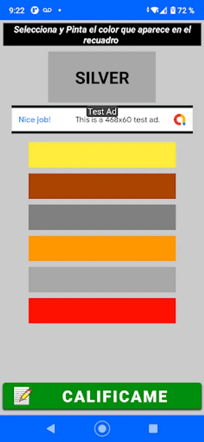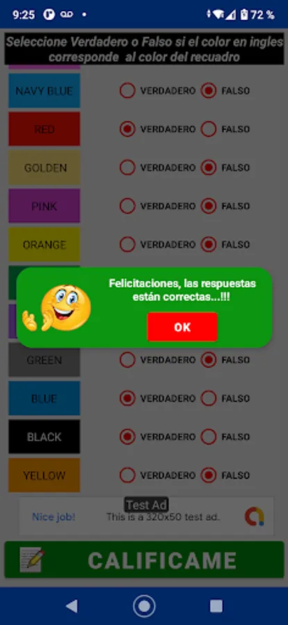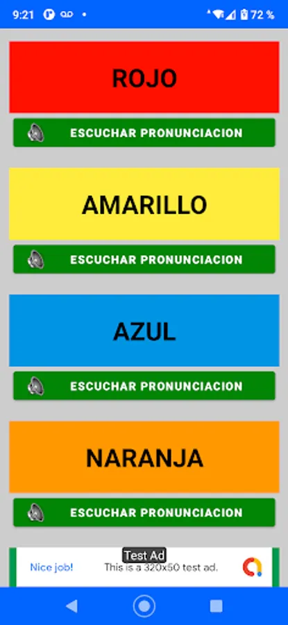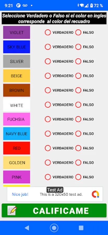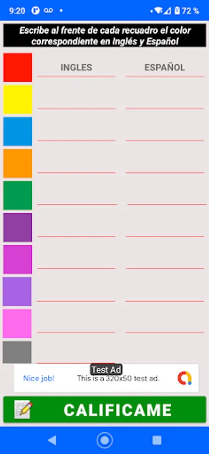 This Application teaches you 18 primary and basic colors that you must learn, it has a list of colors and each box shows you the color in Spanish and when you press on each one it shows you the color in English and how to write it, you can also listen to the pronunciation of each color.