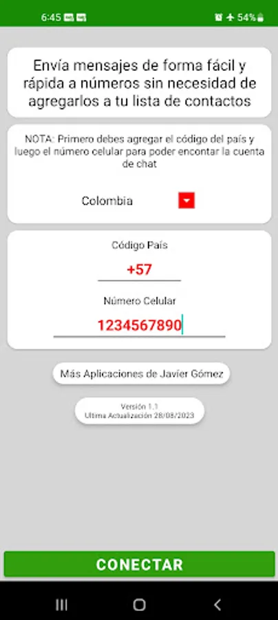 An application to send messages without having to have the number in your contact list with an easy-to-use design...!!!