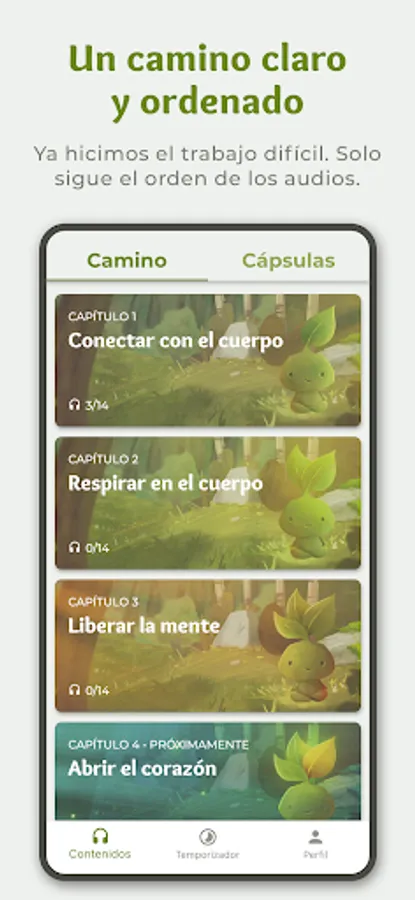 Let's start each chapter by practicing together, with step-by-step instructions. And we will end up practicing together, but in silence, so that later you can continue practicing without depending on us.