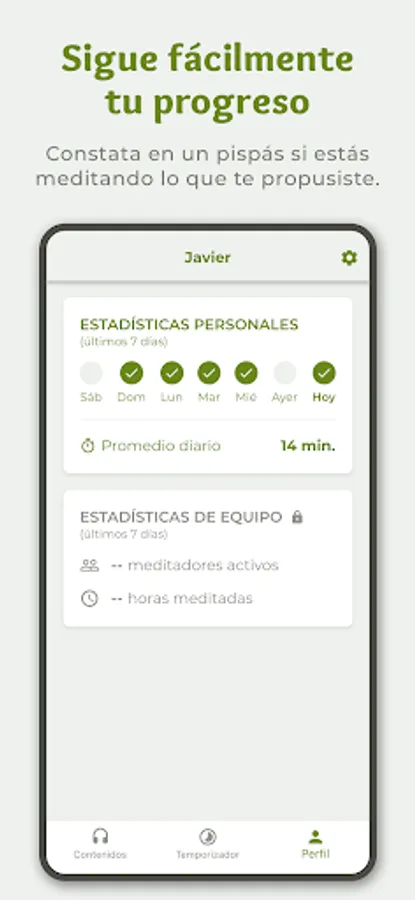 In addition to the contents, the app offers (a) a timer to practice silently and (b) a statistics section so you can see how much you are meditating.