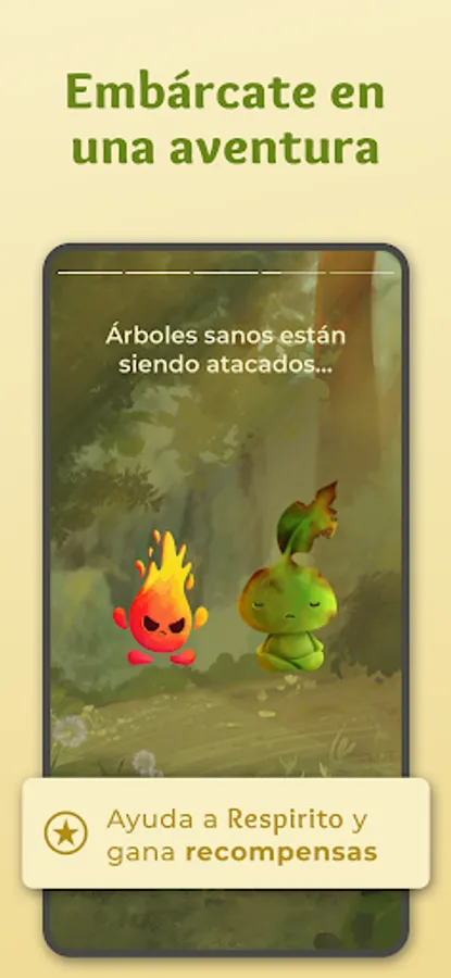 The forest is facing an outbreak of Estresitos. Your mission: help Respirito restore balance to his home. By doing so you will access new exercises, sounds of nature, and other surprises. What are you waiting for? Respirito needs you!