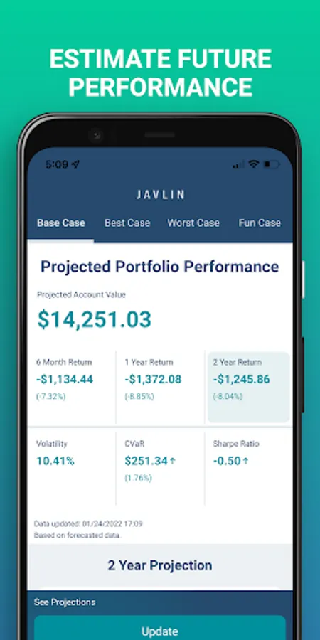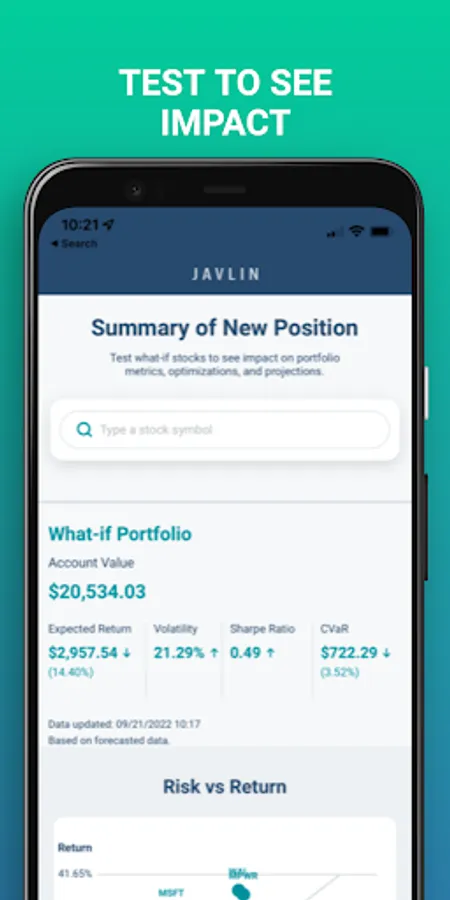 Experience advanced investing with JAVLIN Invest's unique blend of portfolio optimizations, Monte Carlo simulations, and supervised Machine Learning algorithms. Unleash the power of Wall Street-level analytics and make better informed long-term investment decisions right from your smartphone.