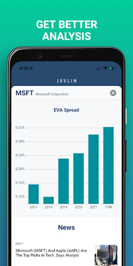 Invest confidently with JAVLIN Invest, your go-to mobile app for quality investment education and portfolio management. By offering fundamental ticker data, vital portfolio analytics, and risk analysis, JAVLIN Invest simplifies long-term investment decisions, making it one of the best investment apps for both beginners and seasoned investors.