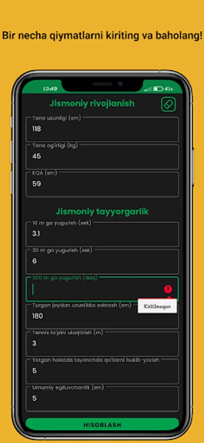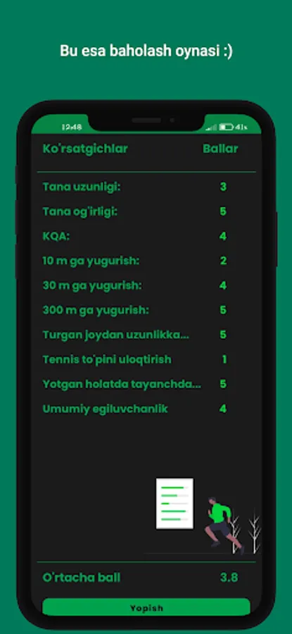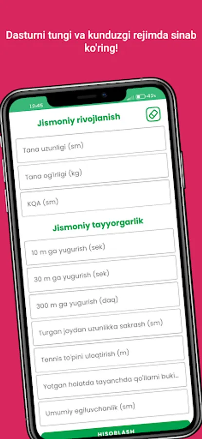 Pedagogik tajriba davomida olingan natijalar asosida biz maktabgacha ta’lim tashkilotlaridagi katta yosh guruhi tarbiyalanuvchilari va umumta’lim maktablarining 1-sinfida o‘qiydigan o‘quvchilarning jismoniy rivojlanishi va harakat tayyorgarligini baholash mobil ilovasini ishlab chiqdik.