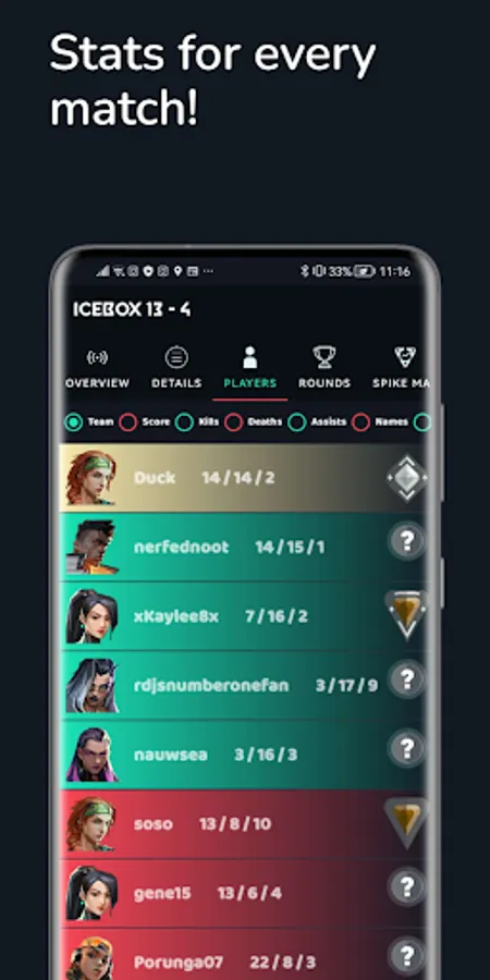 ✔️View an image of the Valorant minimap and see all of the spike plants and each player position for each kill!