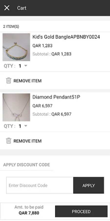 Gold & Diamonds application, online shopping.
