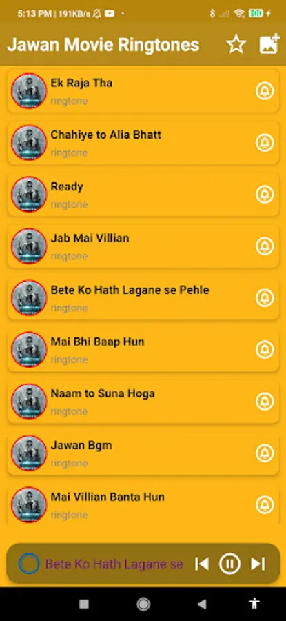 Jawan Movie Ringtones App consist all Jawan movie songs ringtone in one place.