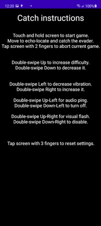 Tap the screen with 3 fingers to reset the difficulty and vibrate settings back to default.