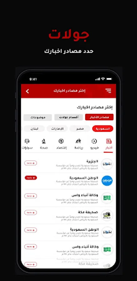 Follow your favorite sources from Saudi Arabia, Egypt, Kuwait, Qatar, UAE, Bahrain, Palestine, Jordan, Morocco, Tunisia, Libya, Yemen, Lebanon, Oman, Iraq and other Arab and international sources