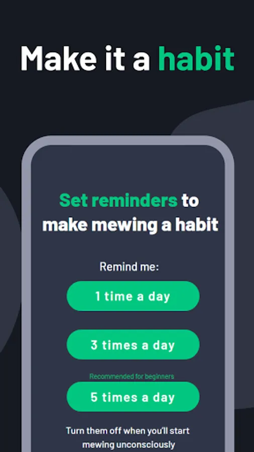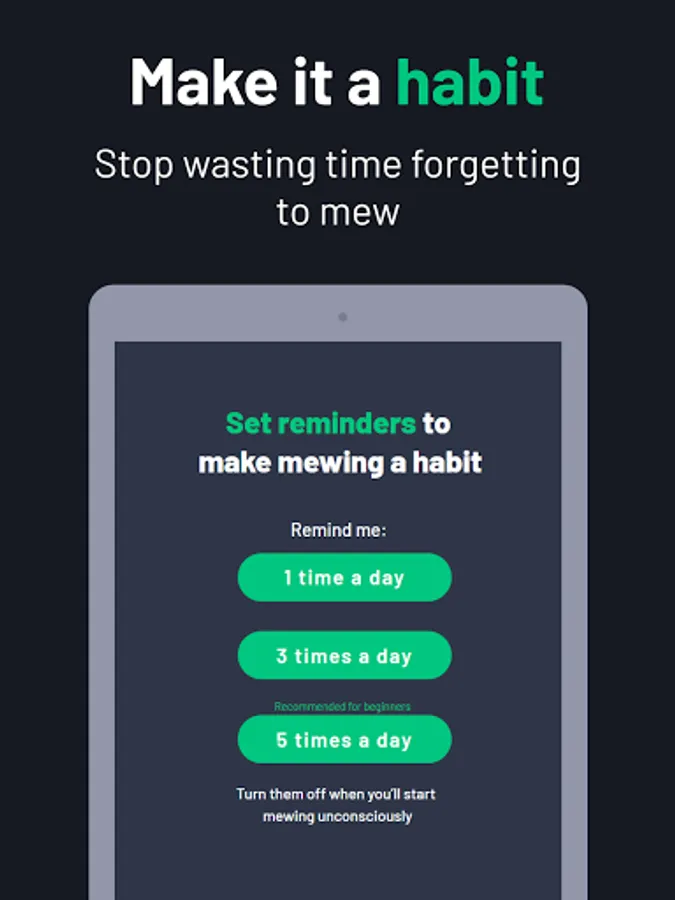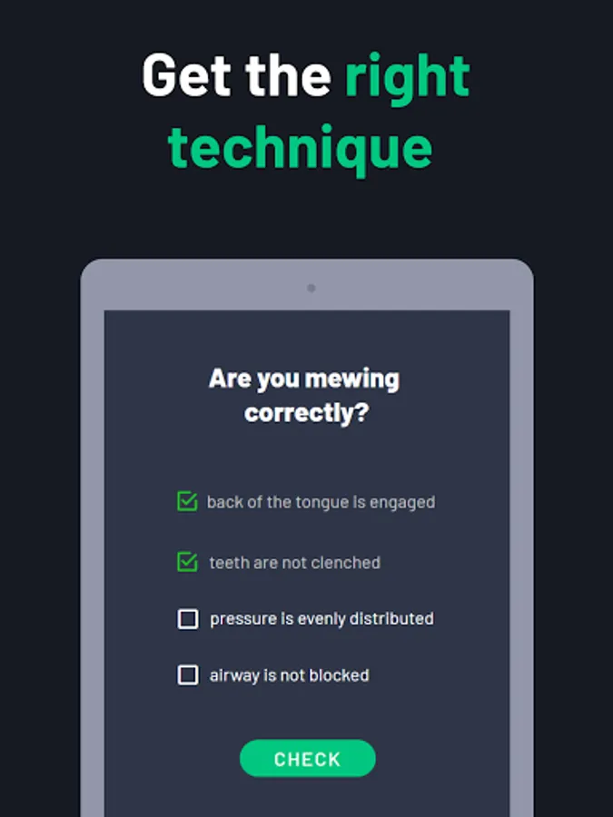Mewing app will help you learn proper mewing exercise technique, make it a habit and track your mewing progress.