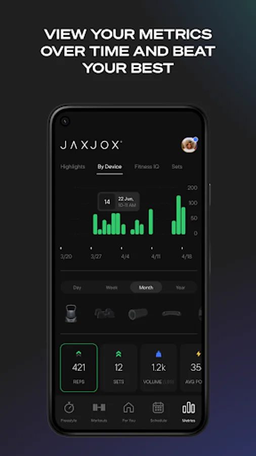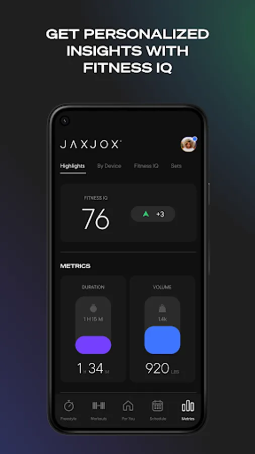 Take the guesswork out of your training experience and let your data guide you in new ways. We track your workout data, which then feeds into the JAXJOX Fitness IQ score, showing progress over time. A new PR awaits you.