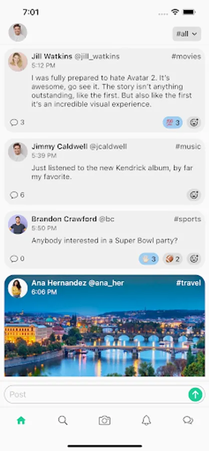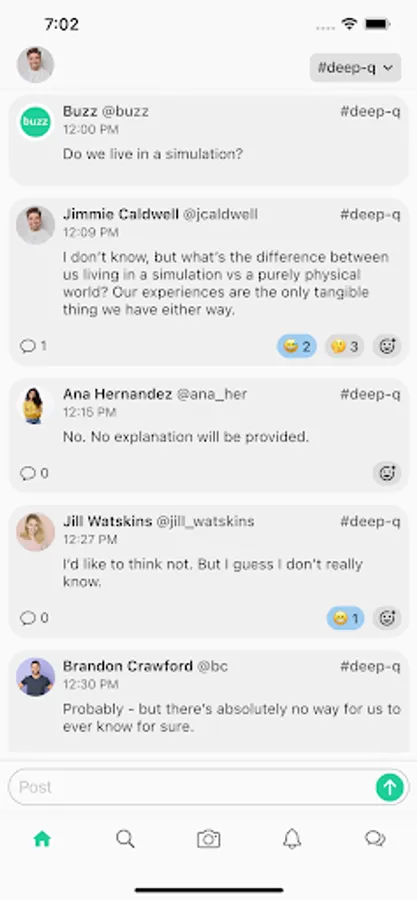 Buzz is built around topic based channels. Choose which channels you want to be a part of, and only see posts sent to the channels you’ve joined.