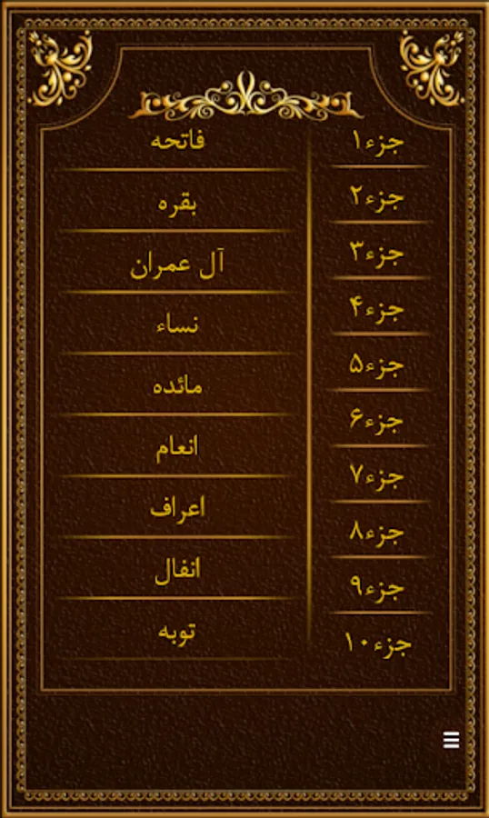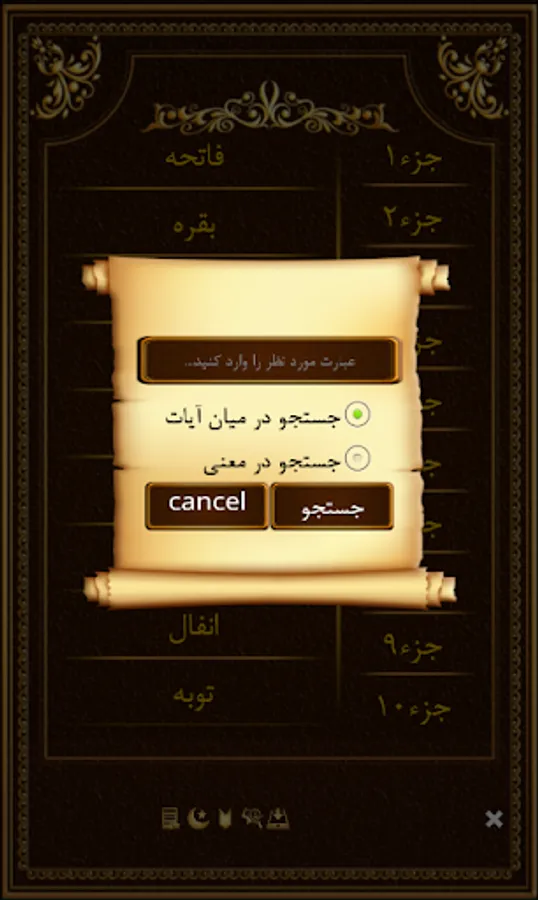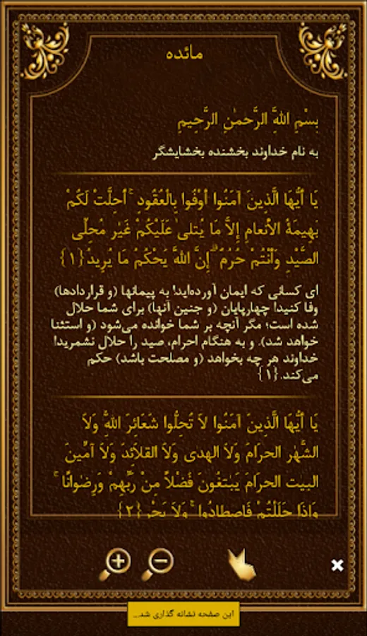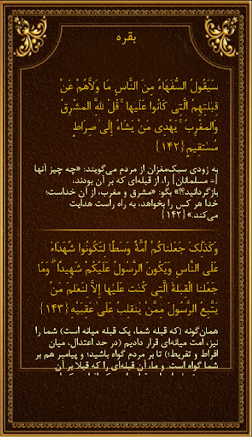 This program provides you with the complete Arabic script of the Holy Qur'an along with its Persian translation.