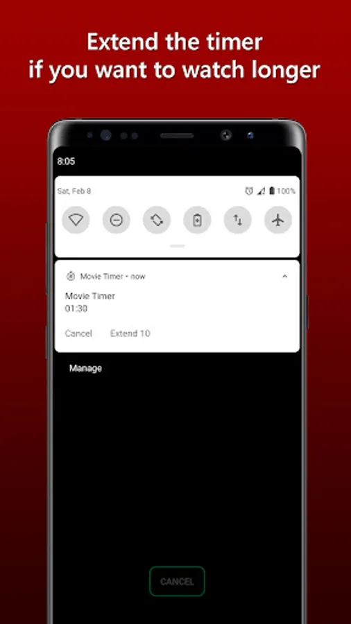 The timer is running out but you still want to watch your favorite movie? You can extend the timer from the notification