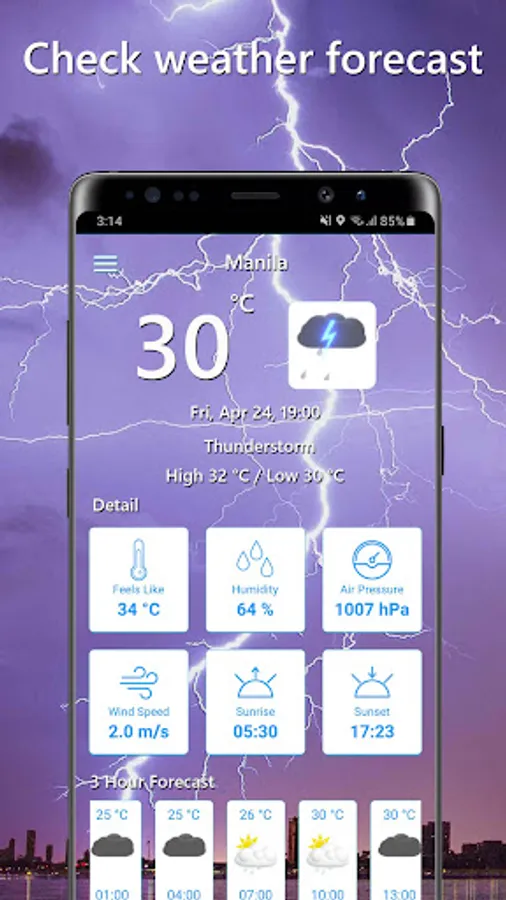 Plan your day effectively with our detailed three-hour weather forecasts. Stay ahead of changing conditions and make informed decisions, whether it's about your morning commute, outdoor activities, or upcoming events.