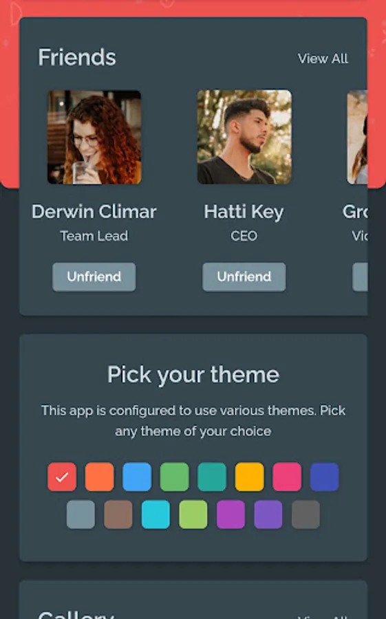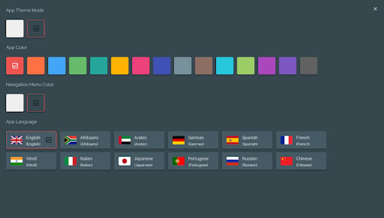 There are 15 different color themes integrated in this app. You can also edit can create your own theme as necessary for your own brand. You can also configure navigation menu and top bar along with themes.