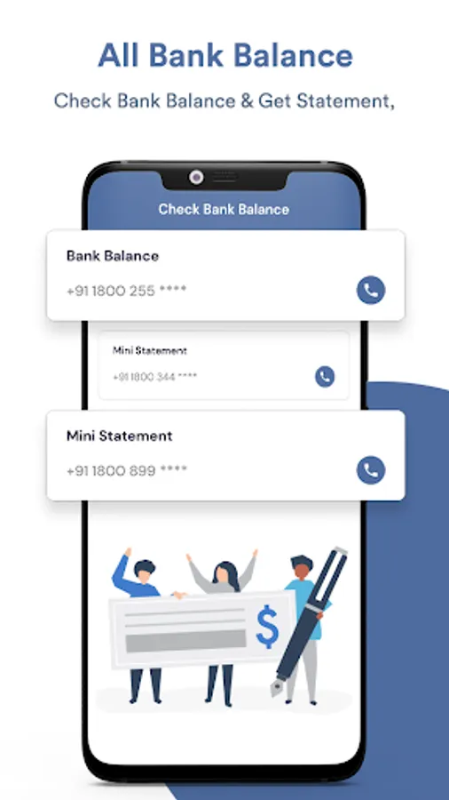 All Bank Balance Enquiry: Bank balance check app is completely FREE bank balance checking an app for users who want check bank balance or get their bank balance enquiry. This App provides the official bank' balance checking number. Either give a missed call from your registered mobile number to your bank’s official bank balance check number in return the bank sends the bank balance details via SMS.