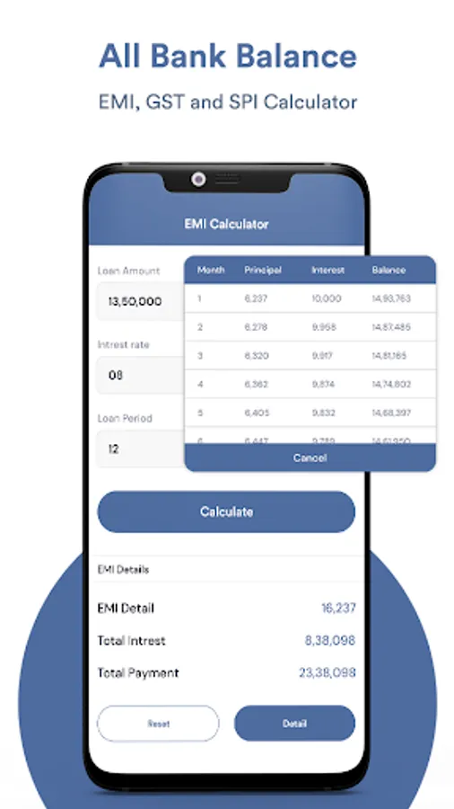 EMI Calculator: With the banking services, this app also provides an EMI calculator from which you can calculate your home loan EMIs, Personal loan EMI or Car loan EMI.