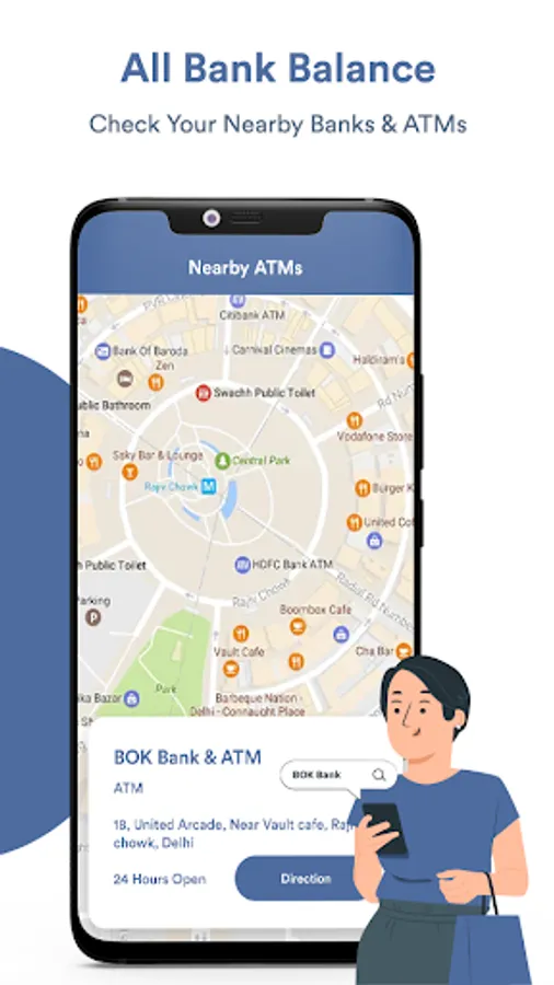 All bank balance inquiry app is 100% free. In addition, it provides missed call banking, ATM search, Bank Branch search. Bank account balance inquiry app supports English (i.e. bank app in Hindi). We are working on adding more languages in the future.